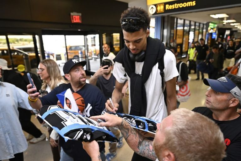 “I don’t know how they knew what flight I was on, but it’s fun,” Wembanyama said about the crowds greeting him at the airport. “It’s different, seeing that you can have such impact on people.”