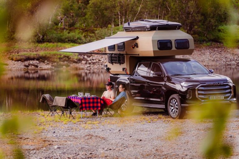 The Vans: While not exactly vans, Norway Overland rents two Maxus T90 pickups, topped with truck-bed campers. Each vehicle, outfitted with a roof tent for sleeping, shower/toilet, kitchen area, and assorted camping gear, can accommodate up to five passengers.