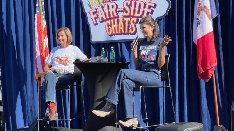 Former U.N. ambassador and former South Carolina Gov. Nikki Haley, who teamed up with the Iowa governor on Saturday for a ‘fair side chat,’ called Reynolds ‘hands down’ the best governor in the nation.