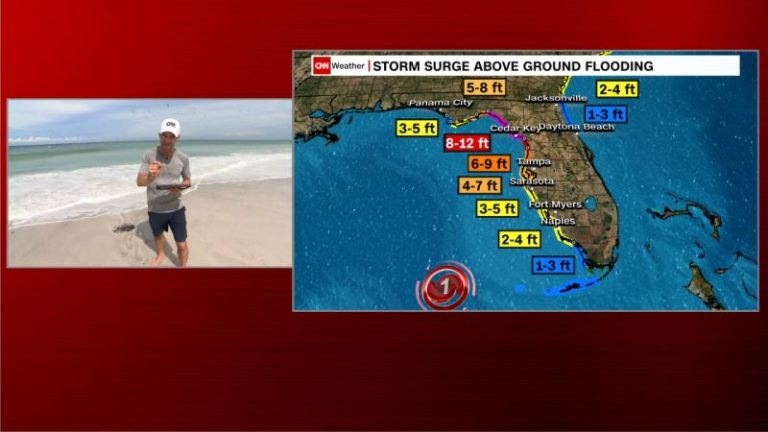 “That is storm surge that, if you’re there while that hits, it’s going to be very difficult to survive,” Florida Gov. Ron DeSantis said in a Tuesday evening news conference.