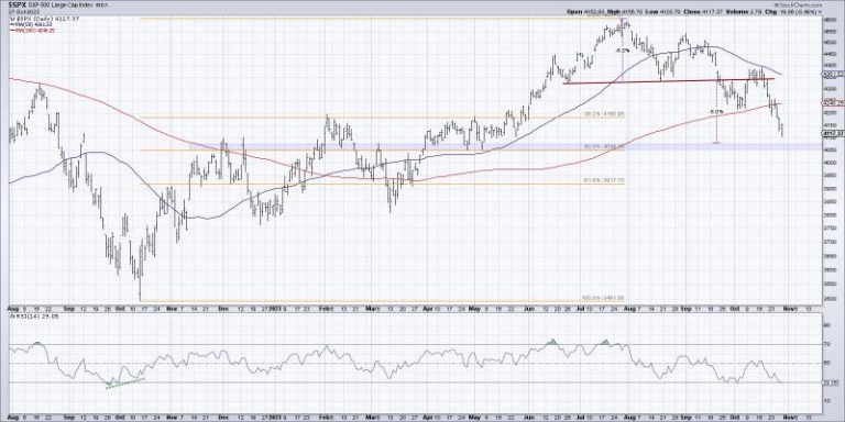 Following this Fibonacci methodology, the 50% level would be next. That suggests 4050 as a reasonable downside target, which happens to be only about 70 points below Friday’s close!