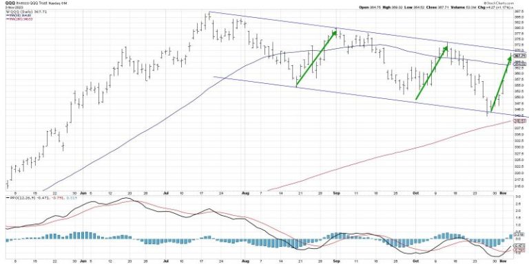 The weekly QQQ chart illustrates how the real painful corrections start with a break below the 40-week moving average, but then usually keep going. This is why so many investors track the 40-week or 200-day moving average, because as long as the market remains above this key long-term barometer, any pullback is just not severe enough to break the larger trend.